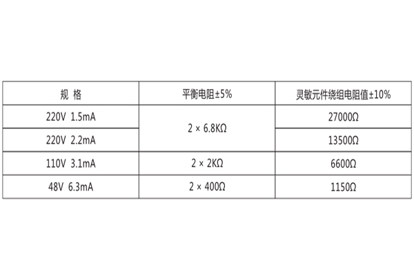繼電器的平衡電阻和靈敏元件電阻值