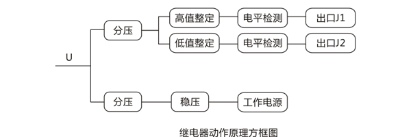 當(dāng)被監(jiān)視的輸出電壓的變休超過繼電器的整定范圍時(shí)(過高或過低) ,繼電器的動(dòng)合(高值)或動(dòng)斷(低值)觸點(diǎn)接通控制回路, 發(fā)出信號(hào),即高值整定回路輸出電壓大于門相監(jiān)電壓,動(dòng)合觸點(diǎn)閉合,指示燈完 ,低值整定回路輸出電壓不小于門檻電壓,動(dòng)斷觸點(diǎn)閉合,指示燈亮。